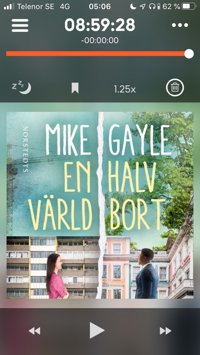 En halv värld bort av Mike Gayle får bli den bok som smyger igång bloggen såhär efter resan. Bilder från Indien och texter om de böcker jag läst den senaste veckan kommer efter hand. Dessvärre har jag dragit med mig någon bacill hem från resan så pigg är jag inte. En kort text om den fina romanen jag lyssnat på det senaste dygnet orkar jag ändå knappa ner. En halv värld bort har ett omslag som missleder mig rejält, omslaget signalerar feelgood och det här är en på många sätt allvarligare roman. Kerry är runt de fyrtio och lever ensam med sin son, hon städar i privathem för att försörja sig och hon tänker ofta på den lillebror hon vet finns. När Kerry var tio och brodern två så placerades de båda i fosterhem och sedan dess har hon inte träffat sin lille bror. Hon har aldrig slutat leta efter honom och till sist anlitar hon en privatdetektiv.